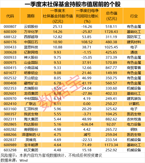 社保基金最新重仓股名单出炉社保基金最新重仓股名单出炉