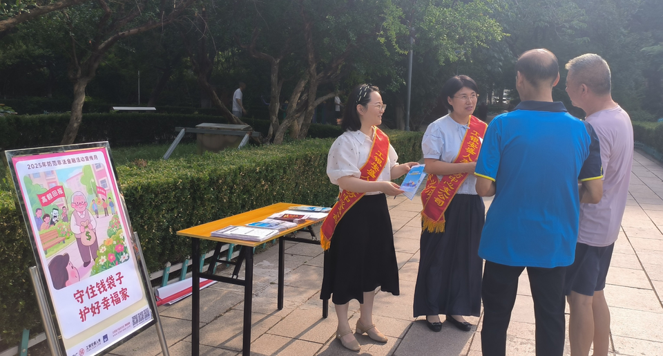 6月20日,潍坊中支组织人员到潍城区永安路小学,在校门口设置宣传咨询点,向学生讲解校园贷、电信网络诈骗等与学生密切相关的金融安全知识,向家长普及防范非法集资知识,引导家长加强对孩子的教育和监管,共同守护校园金融安全。6月23日,组织人员走进奎文区东苑公园,针对老年群体开展精准宣传,讲解以“养老服务”“高息理财”等为名的非法集资诈骗手段,提醒老年人不贪图小利,不轻信他人。
