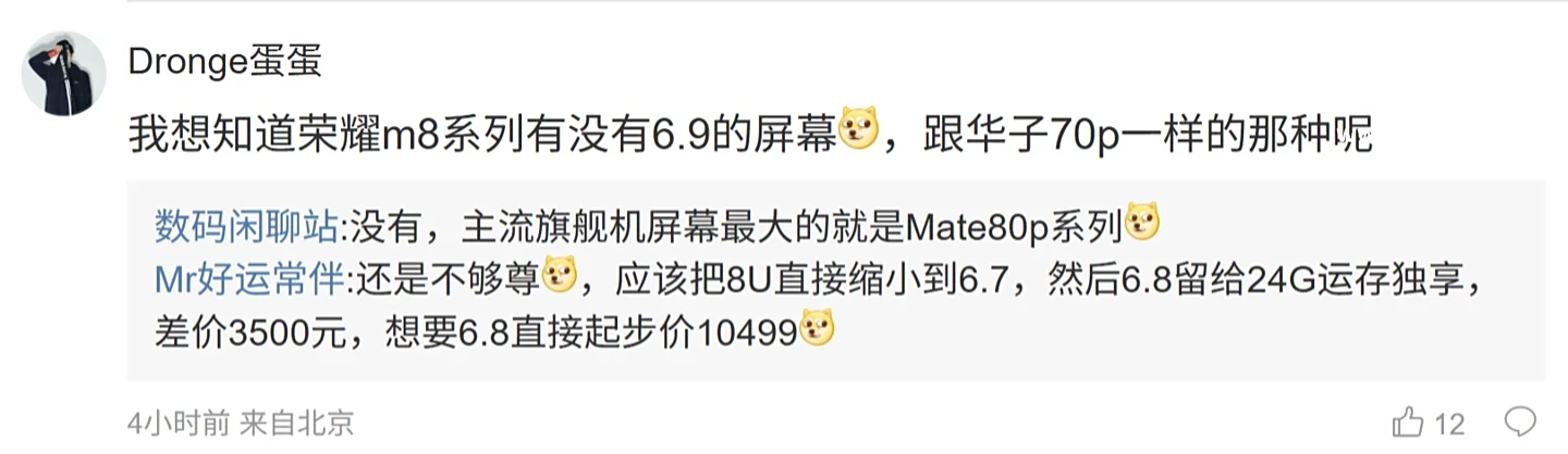 另外一位网友则表示:“我想知道荣耀 m8 系列有没有 6.9 的屏幕
