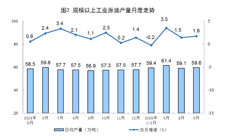 5月份,规上工业原油产量1847万吨,同比增长1.8%5月份,规上工业原油产量1847万吨,同比增长1.8%