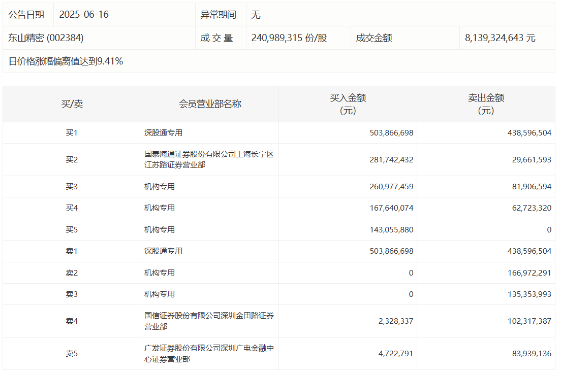 东山精密今日涨停 三机构专用席位净买入4.27亿元东山精密今日涨停 三机构专用席位净买入4.27亿元