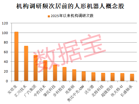 据证券时报·数据宝统计,截至目前,今年以来机构调研5次及以上的人形机器人概念股有60只。调研频次靠前的是安培龙、汇川技术、广汽集团、中控技术、肇民科技等。